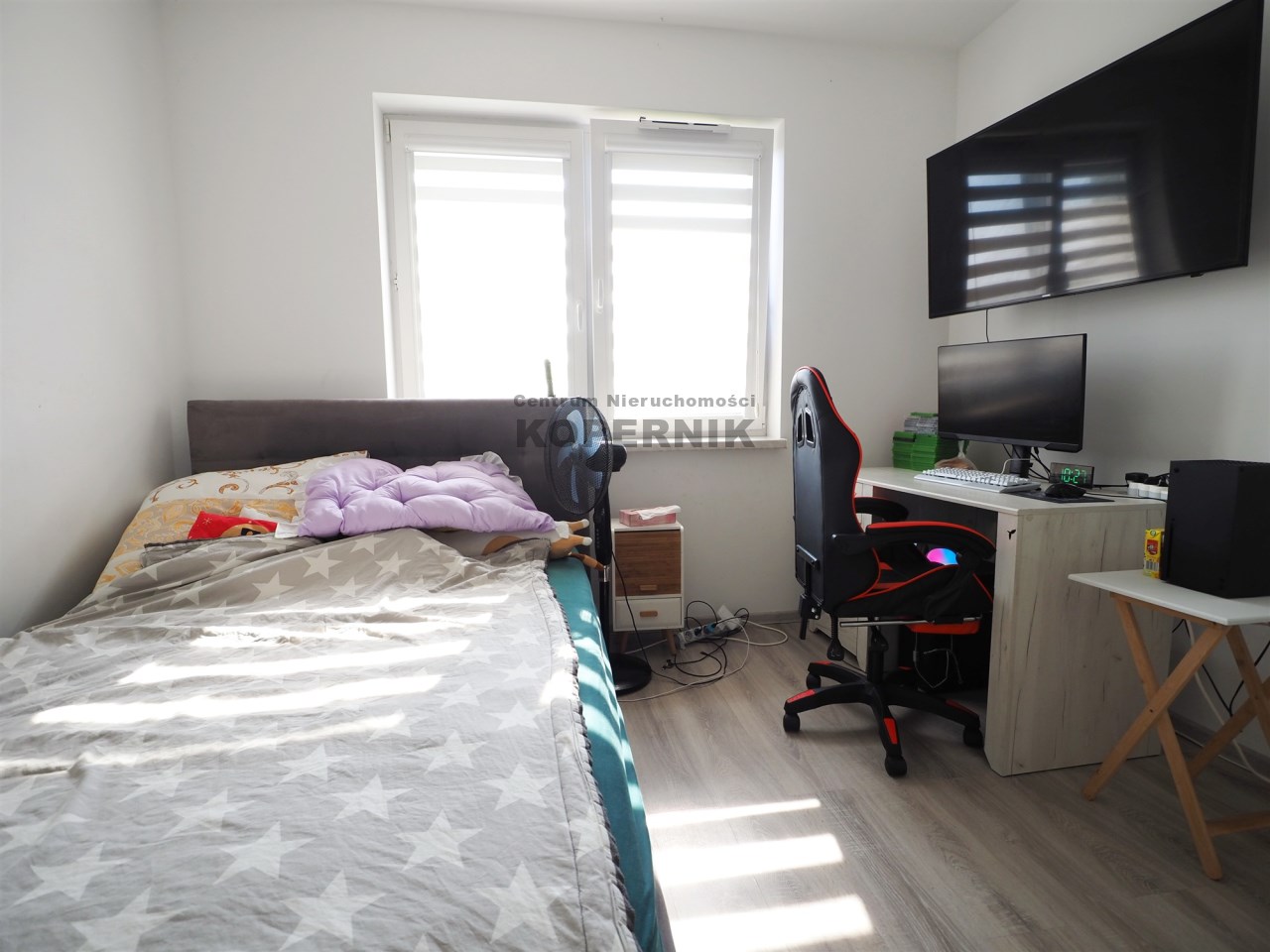 W pokojach na podłodze panele, na ścianach gładzie. Okna PCV.