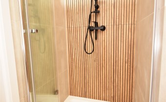 Łazienka połączona z wc z dużym wygodnym prysznicem.