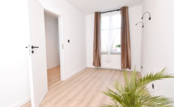 Mieszkanie zostało kompleksowo wyremontowane – wymieniono wszystkie instalacje, wykonano nowe gładzie i pomalowano, położono panele podłogowe oraz zamontowano nowe drzwi i okno w łazience.