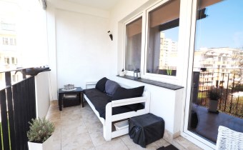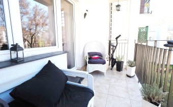 imponujący duży balkon - gdzie można latem posiedzieć, wypić kawę na świeżym powietrzu.