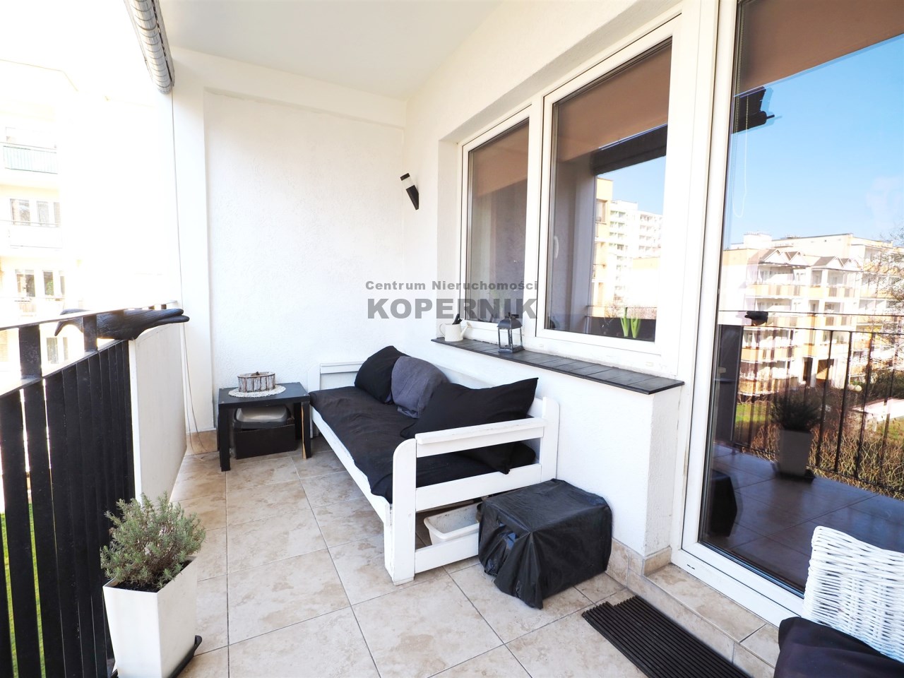 imponujący duży balkon - gdzie można latem posiedzieć, wypić kawę na świeżym powietrzu.